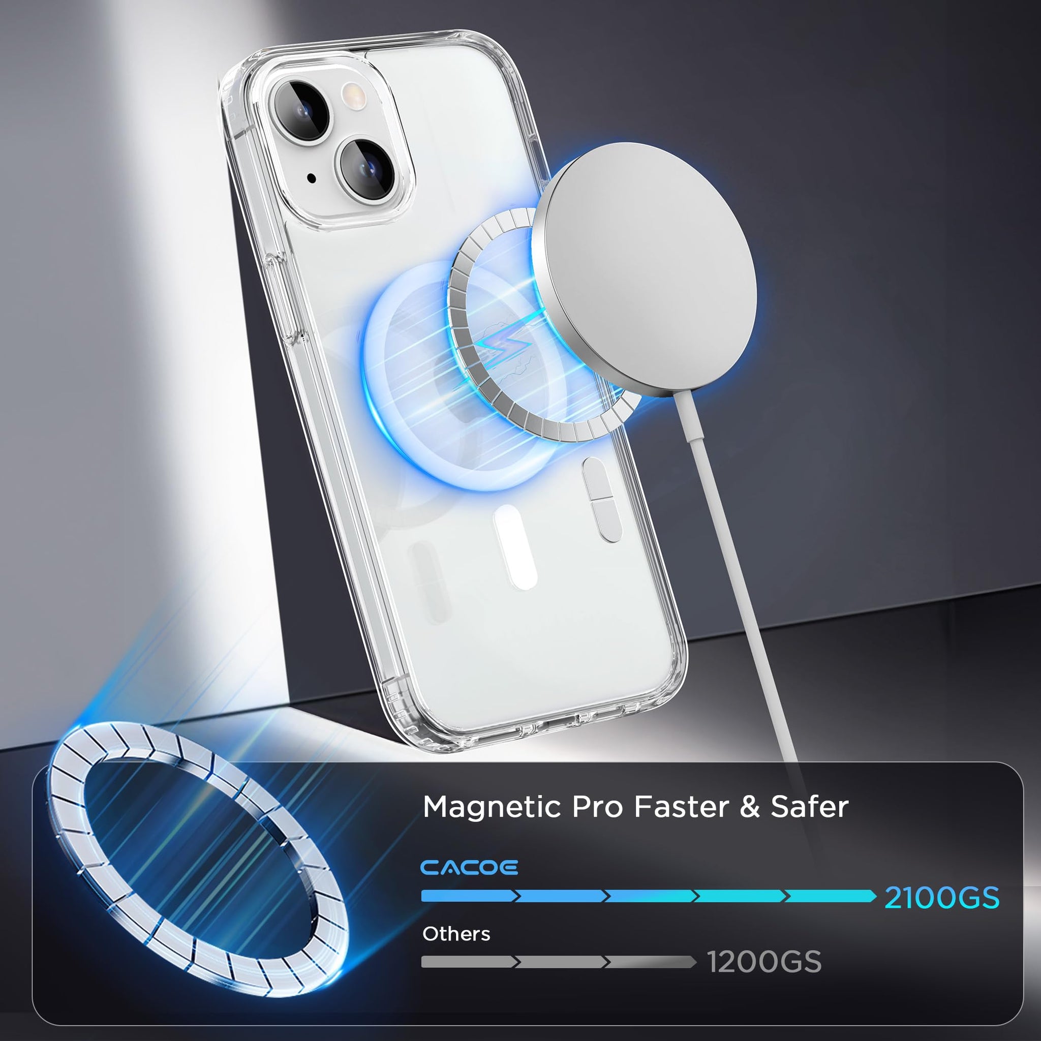 CACOE Magnetic Case for iPhone 13 & iPhone 14 6.1 inch-Compatible with MagSafe & Magnetic Car Phone Mount,Not Yellowing Anti-Scratch (Clear)