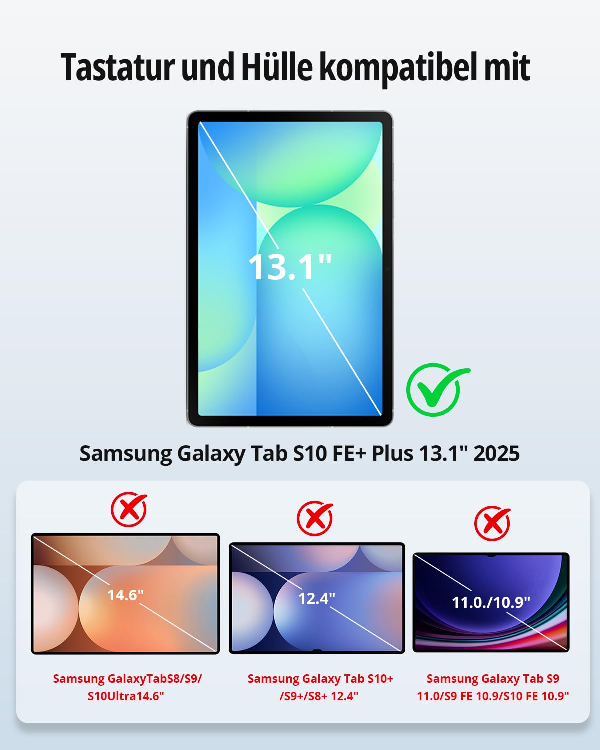 - Kompatibel mit Bietet Ihnen 360º rundrum Schutz für Ihr Samsung Galaxy Tab S10 FE+ 13.1 Zoll SM-X620/ SM-X626, Nicht kompatibel mit Samsung Galaxy Tab S10 Fe Plus 12,4 Zoll
