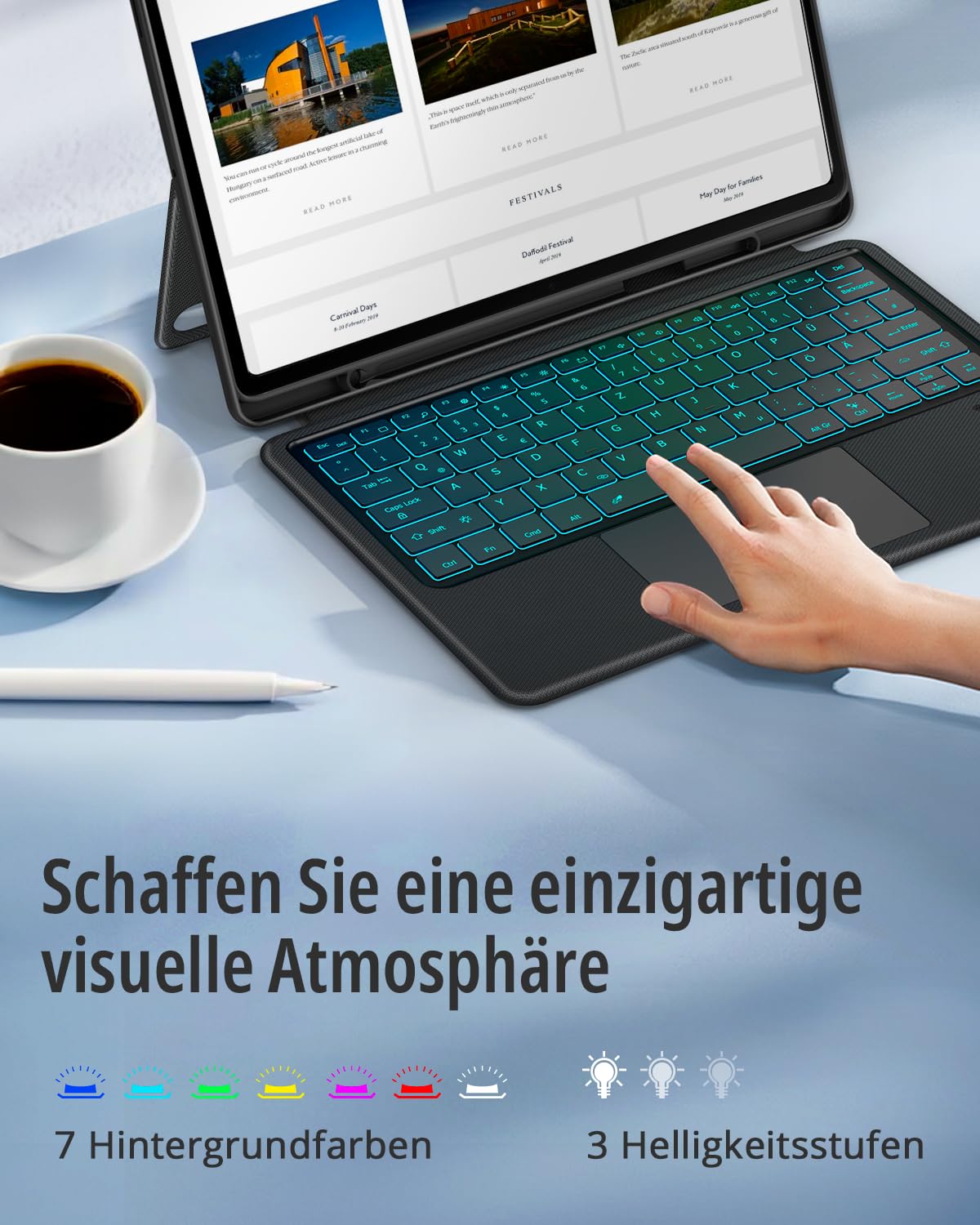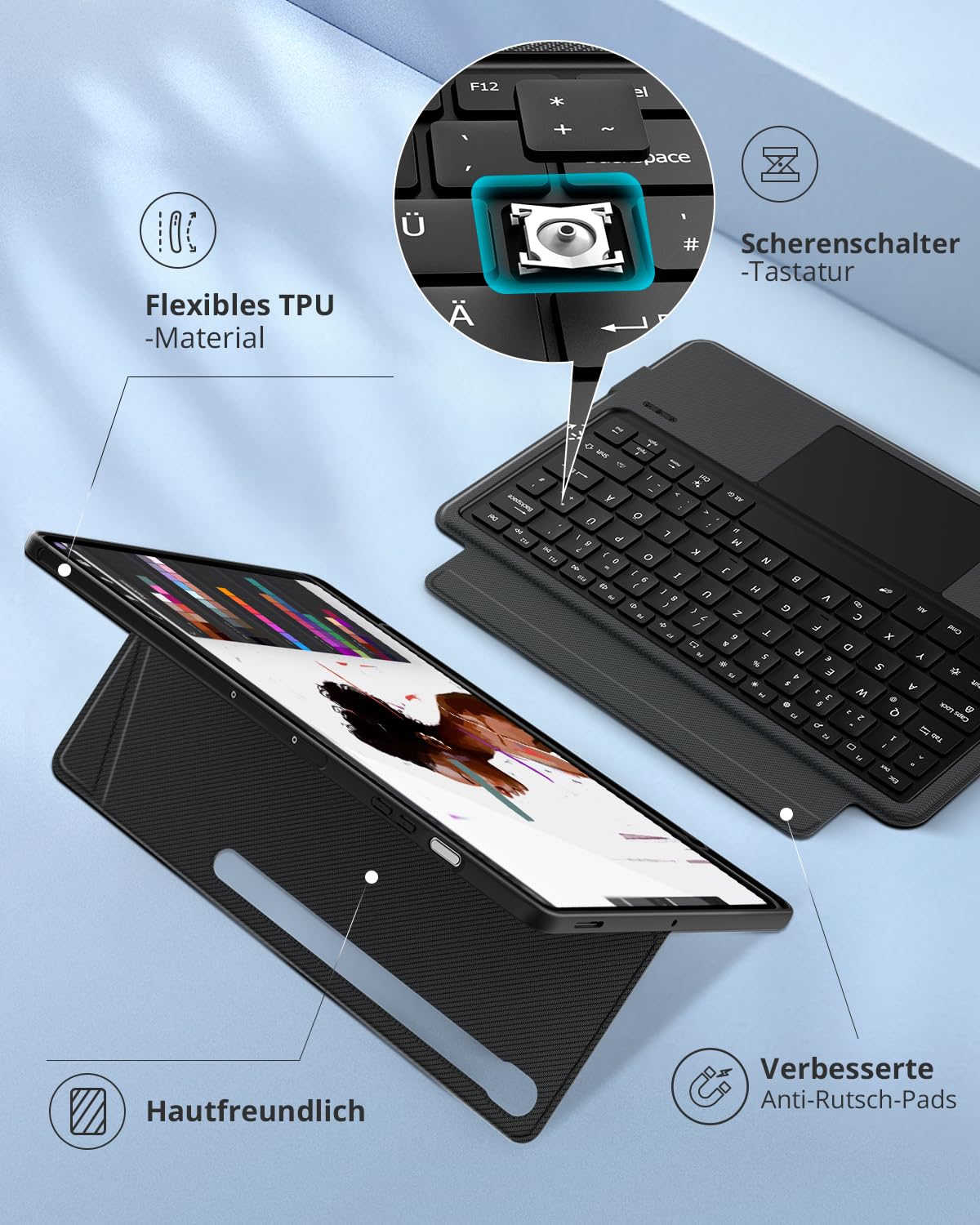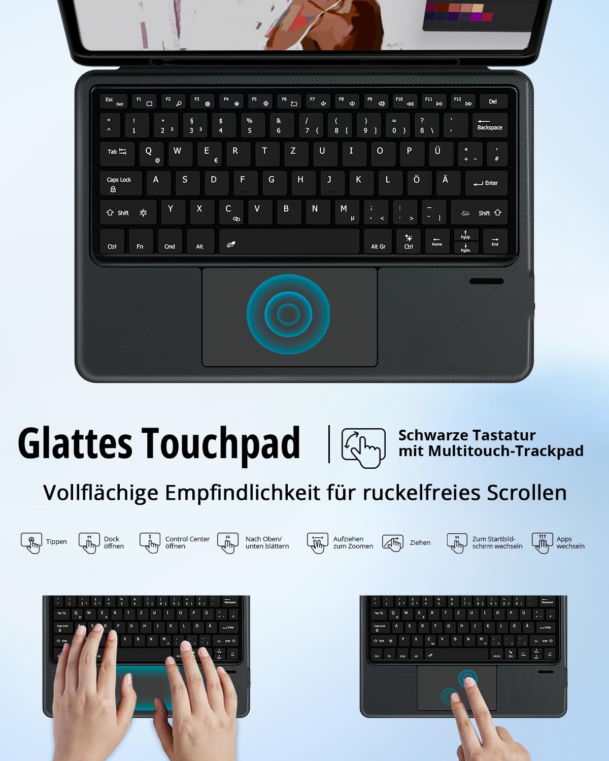 - Großes Click-Anywhere-Trackpad: Die Hülle mit Tastatur besitzt ein großes, präzises und zuverlässiges Trackpad, dessen gesamte Fläche genutzt werden kann und Multi-Touch-Gesten unterstützt